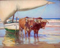 Beached Boat and Oxen, Cabanal Oil on Canvas CR.MJA.1669