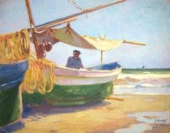Beached Sardine Boats, Cabanal Oil on Canvas on Board CR.MJA.SPBE1788