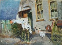 Dutch House with Chickens Oil on Canvas on Board CR.MJA.NEAN1836