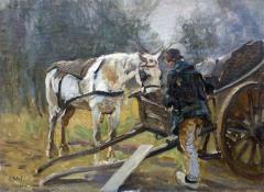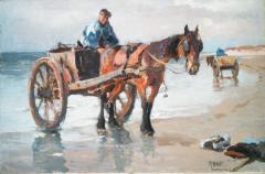 Dutchman with Horse Cart, Scheveningen Oil on Canvas on Board CR.MJA.NEBE2210