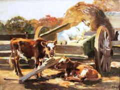 Farmyard with Goat and Calves, Lyme Oil on Canvas CR.MJA.586