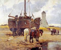 Fishing Boat, Katwyk Oil on Canvas CR.MJA.NEBE104