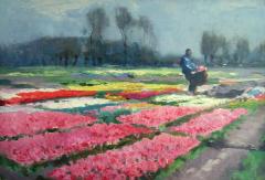 Gathering Tulips Oil on canvas on mahogany panel CR.MJA.NELF2008