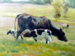Cows and a Calf in a Summer Landscape Oil on Canvas on Board CR.MJA.1584