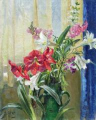 Vased Lilies Oil on Canvas CR.MJA.418