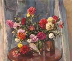 Vased Dahlias Oil on Canvas CR.MJA.1982