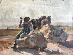 Breaking the Boulder Likely an oil on canvas on board CR.MJA.MILF1855