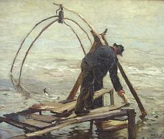 Dip Net Fishing Oil on Canvas CR.MJA.MILF1917
