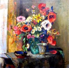 Garden Flowers with Poppies Oil on Canvas CR.MJA.233