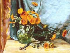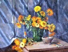 Calendula in a Glass Pitcher Oil on Canvas CR.MJA.231