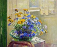 Flowers in a Green Glass Bowl Oil on Canvas CR.MJA.1808