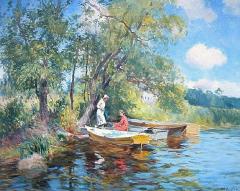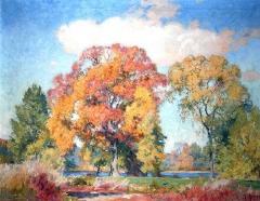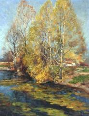 Landscape with Birch Trees and Lily Pads Oil on Canvas on Board CR.MJA.MILW2048