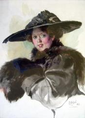 Girl with Hat and Muff Watercolor on Paper CR.MJA.1723